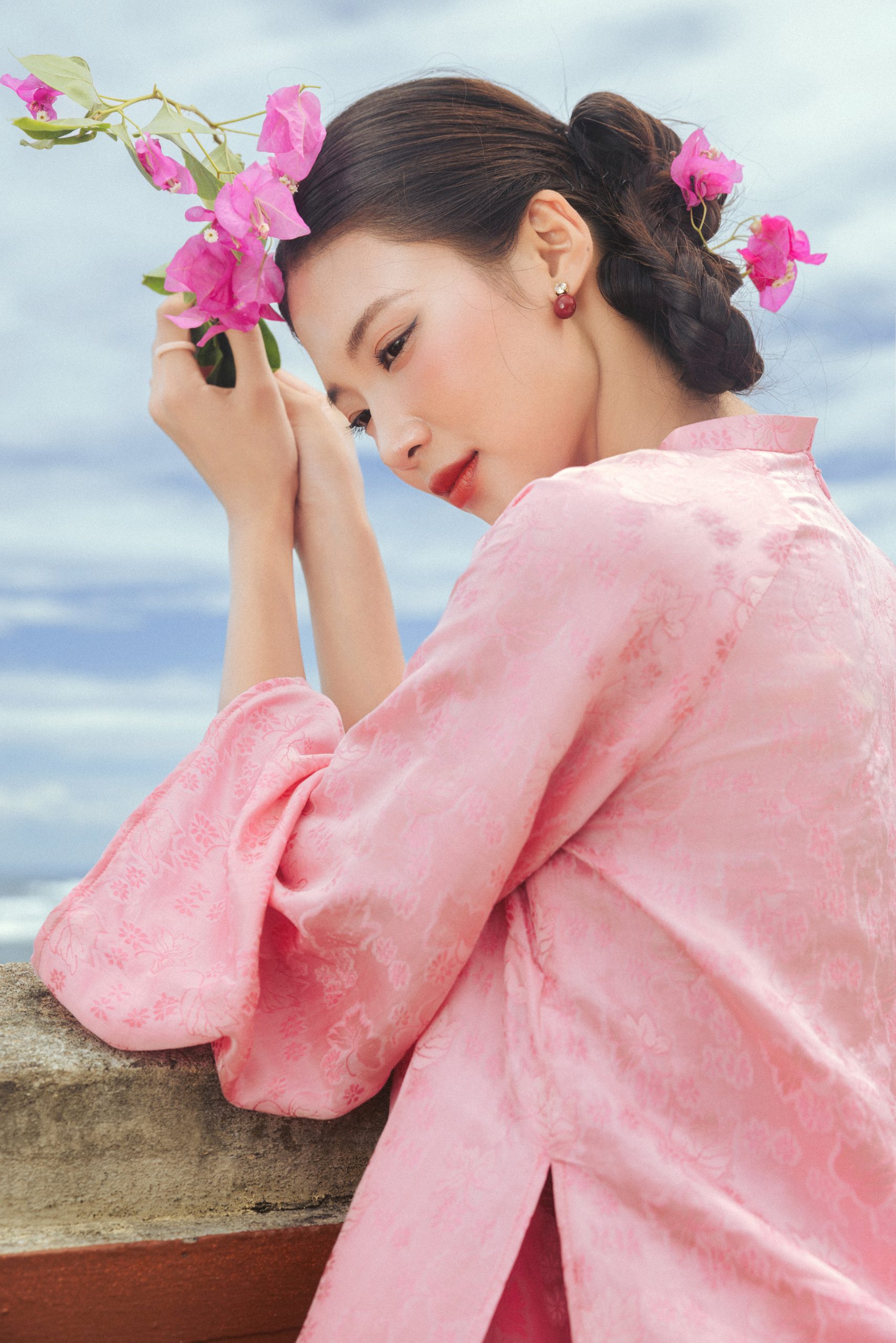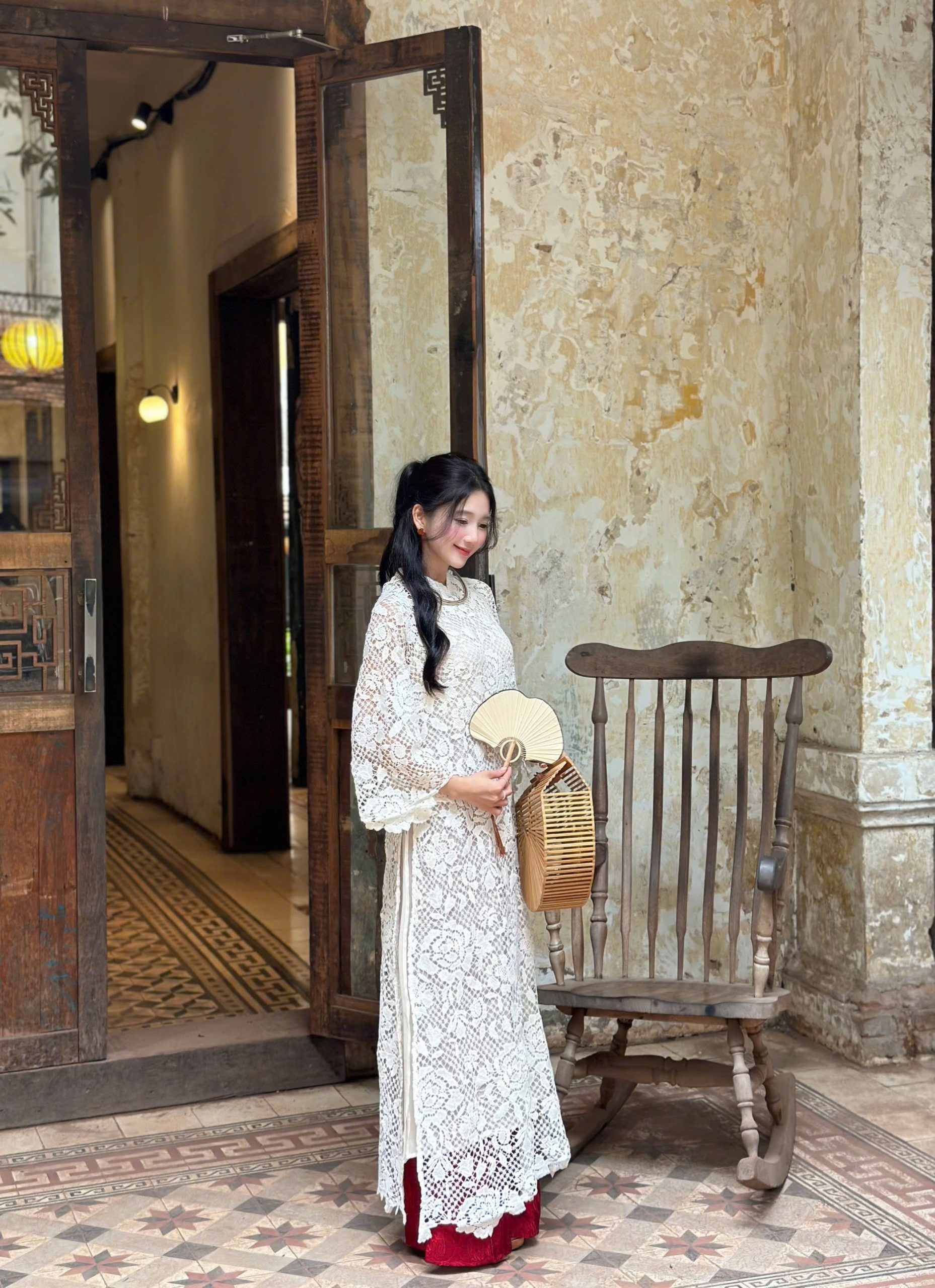 Áo dài ngũ thân lụa tơ tằm hoạ tiết hoa sen màu đỏ