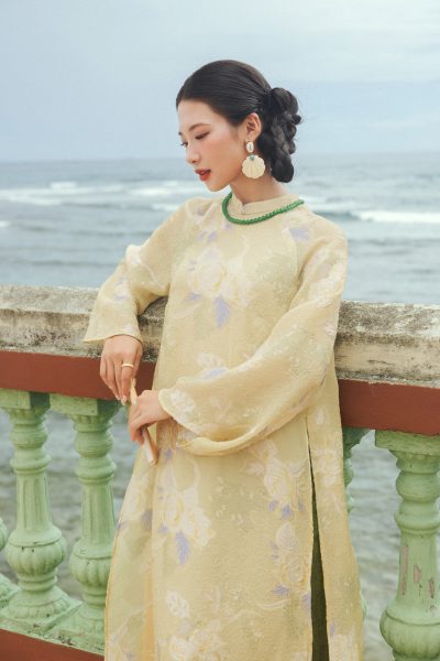 – Phom dáng: Kiểu áo dài cách tân suông rộng, tay loe