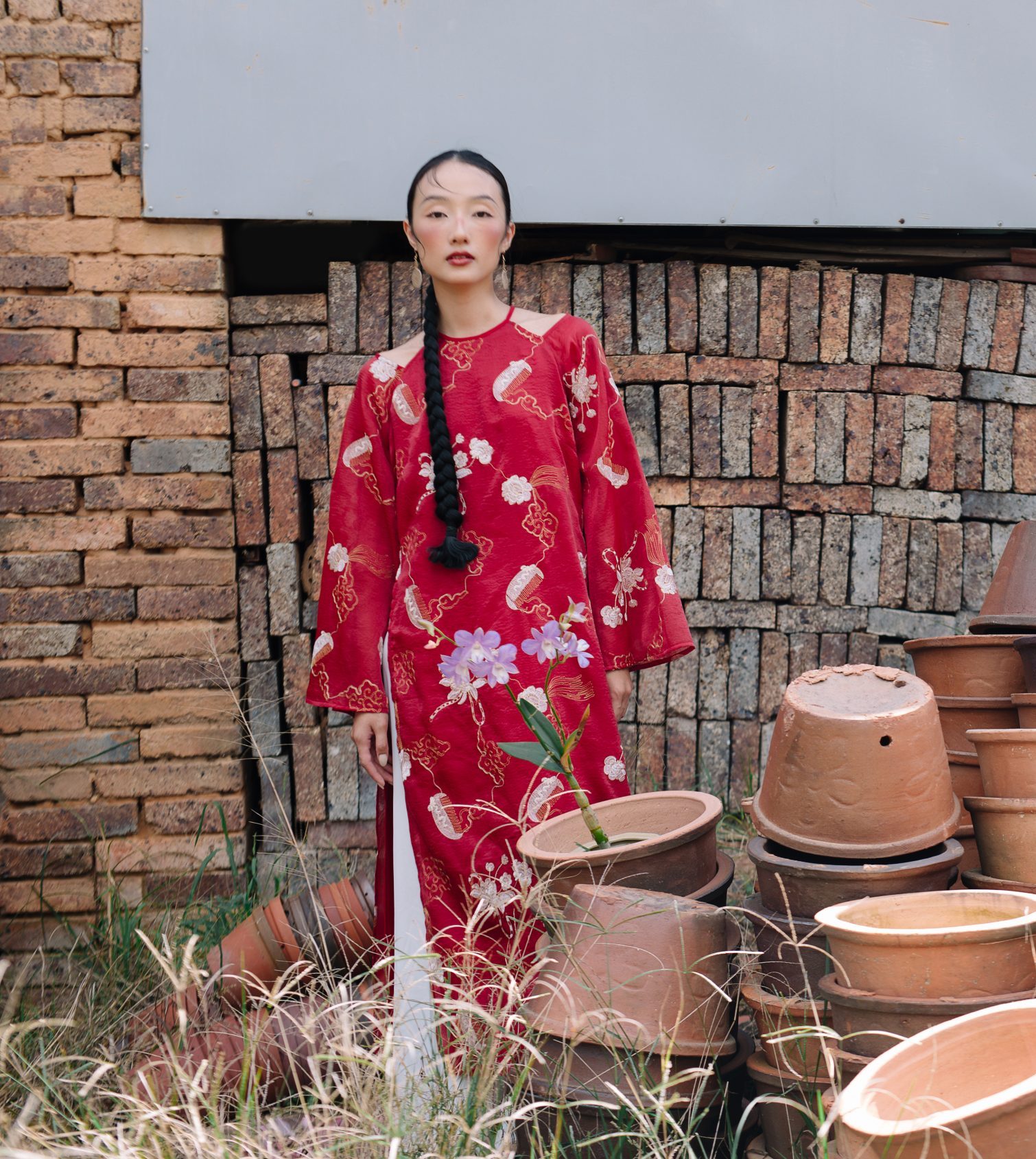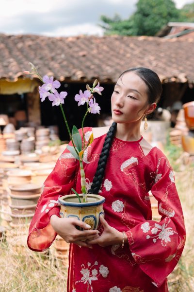 Áo dài cổ yếm Khuê Cát khoác lên mình vẻ đẹp kiêu kỳ và duyên truyền thống, gợi nhớ hình ảnh những giai nhân xưa với phong thái đoan trang. Sắc đỏ nổi bật hòa cùng đường thêu tinh xảo tạo nên một tổng thể vừa sang trọng, vừa đậm hồn cổ xưa. Đây là thiết kế dành cho những ai yêu nét đẹp sâu lắng, thanh tú nhưng vẫn muốn giữ một chút kiêu hãnh rất Á Đông.