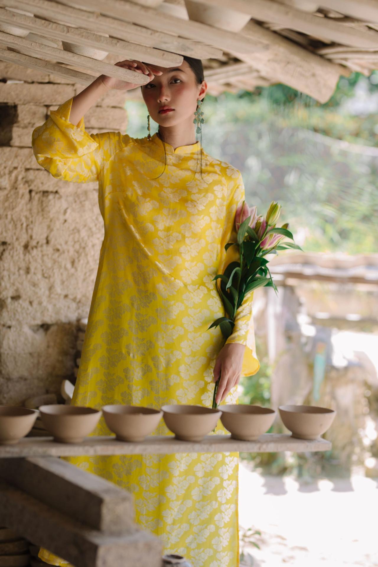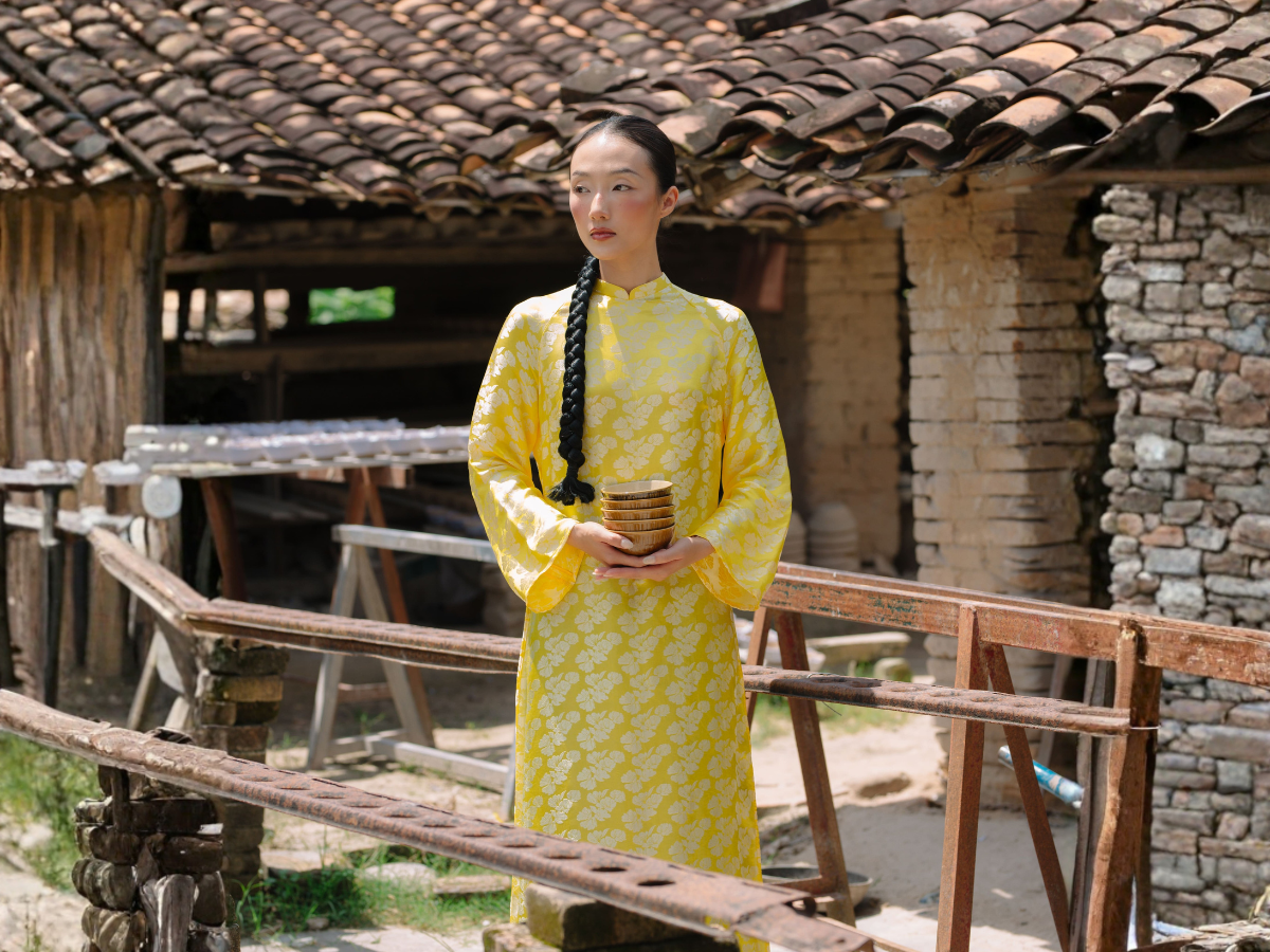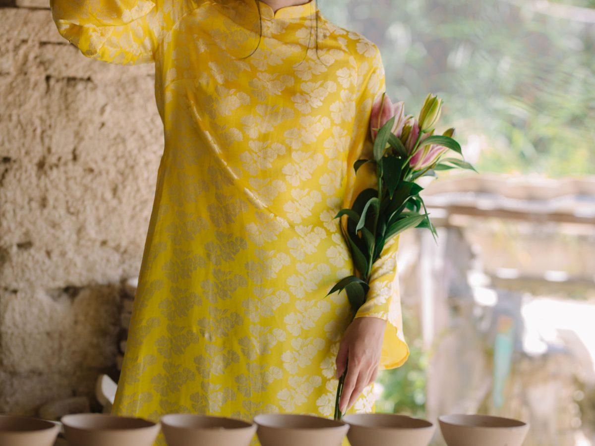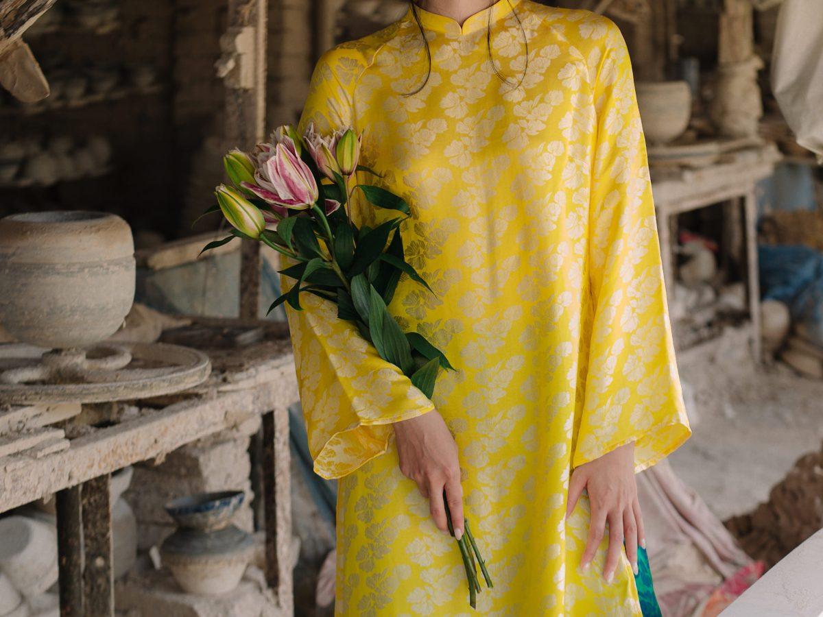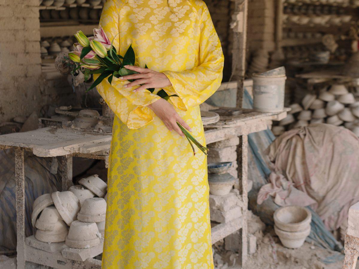 Áo Dài Ngân Hạnh màu vàng