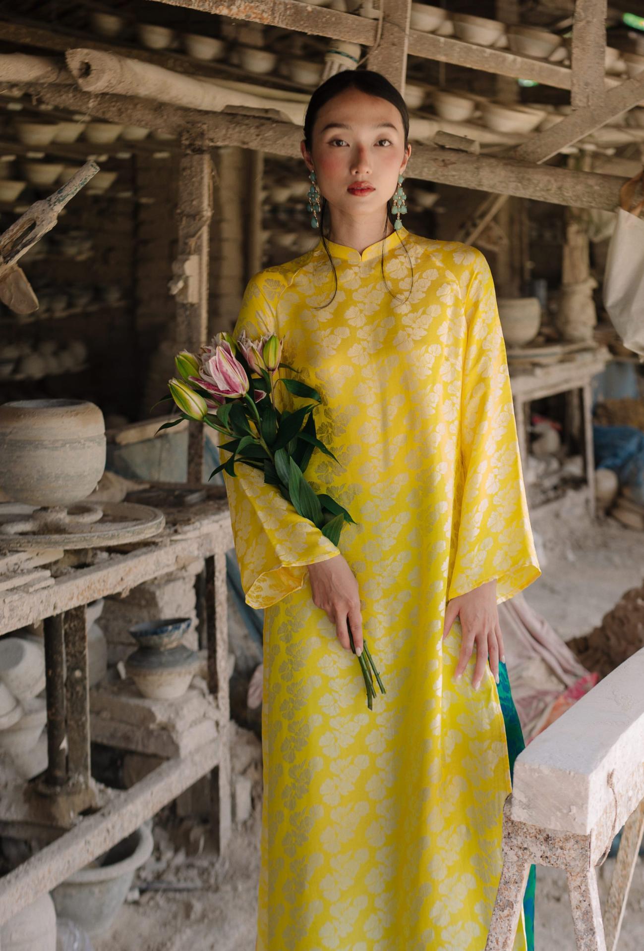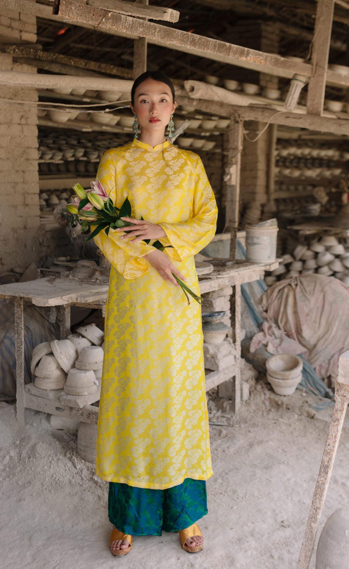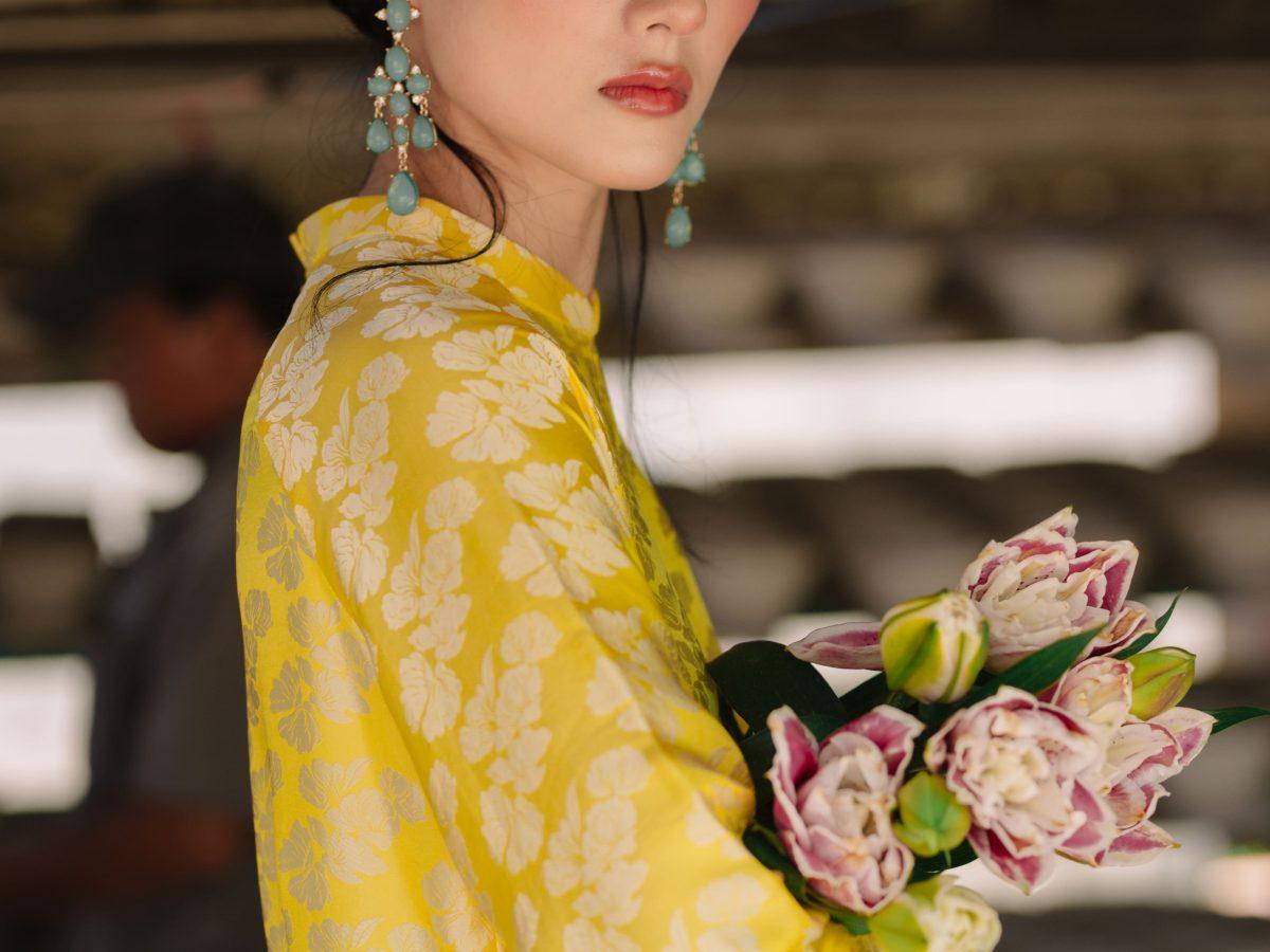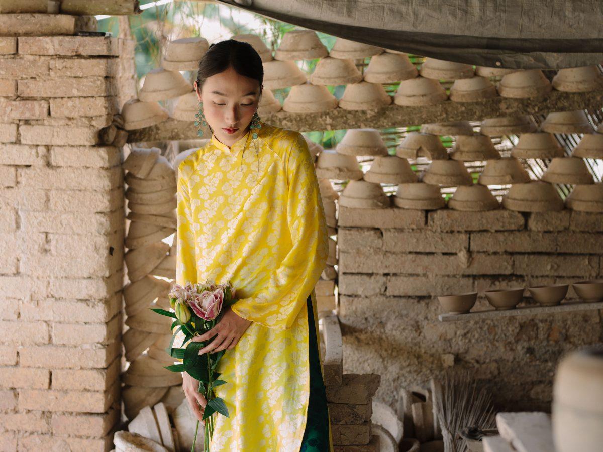 Áo Dài Ngân Hạnh màu vàng