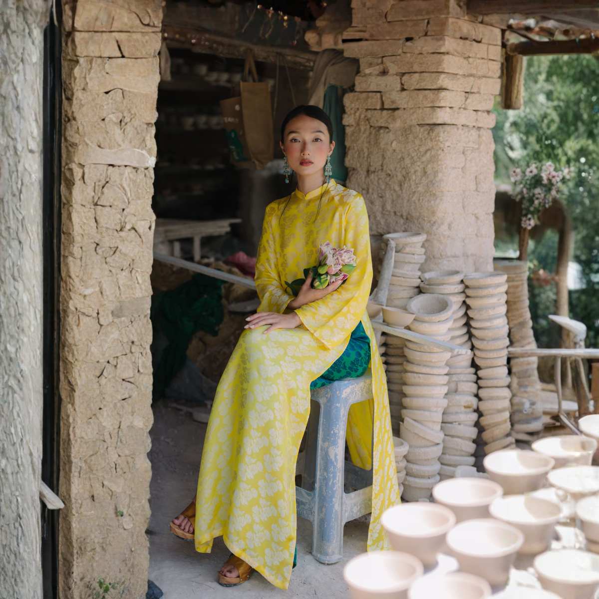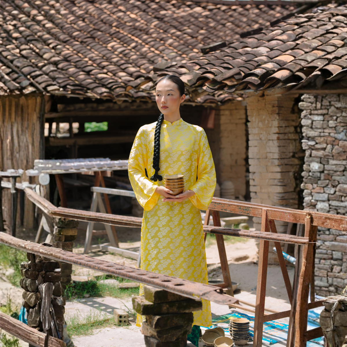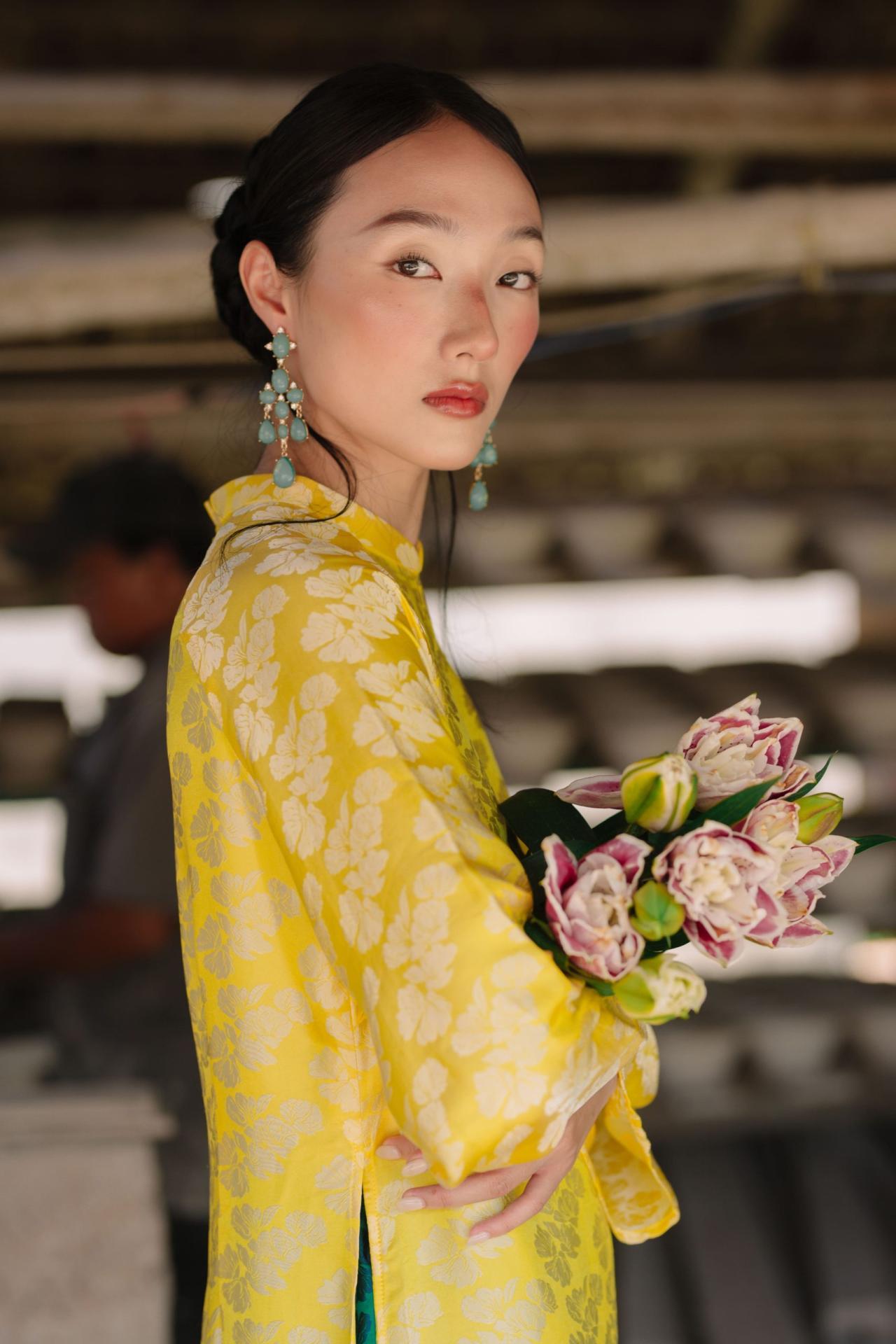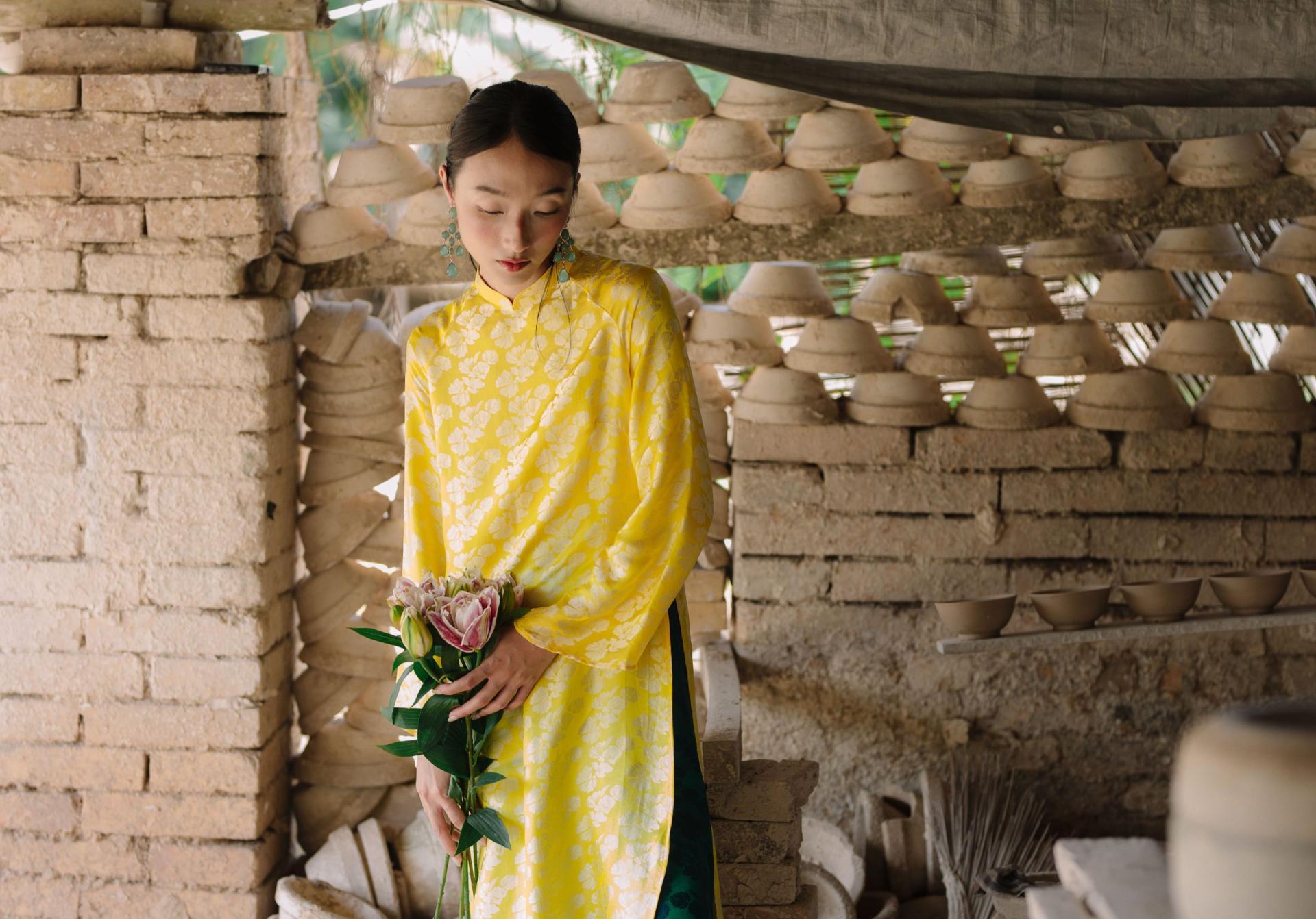 Áo Dài Ngân Hạnh màu vàng