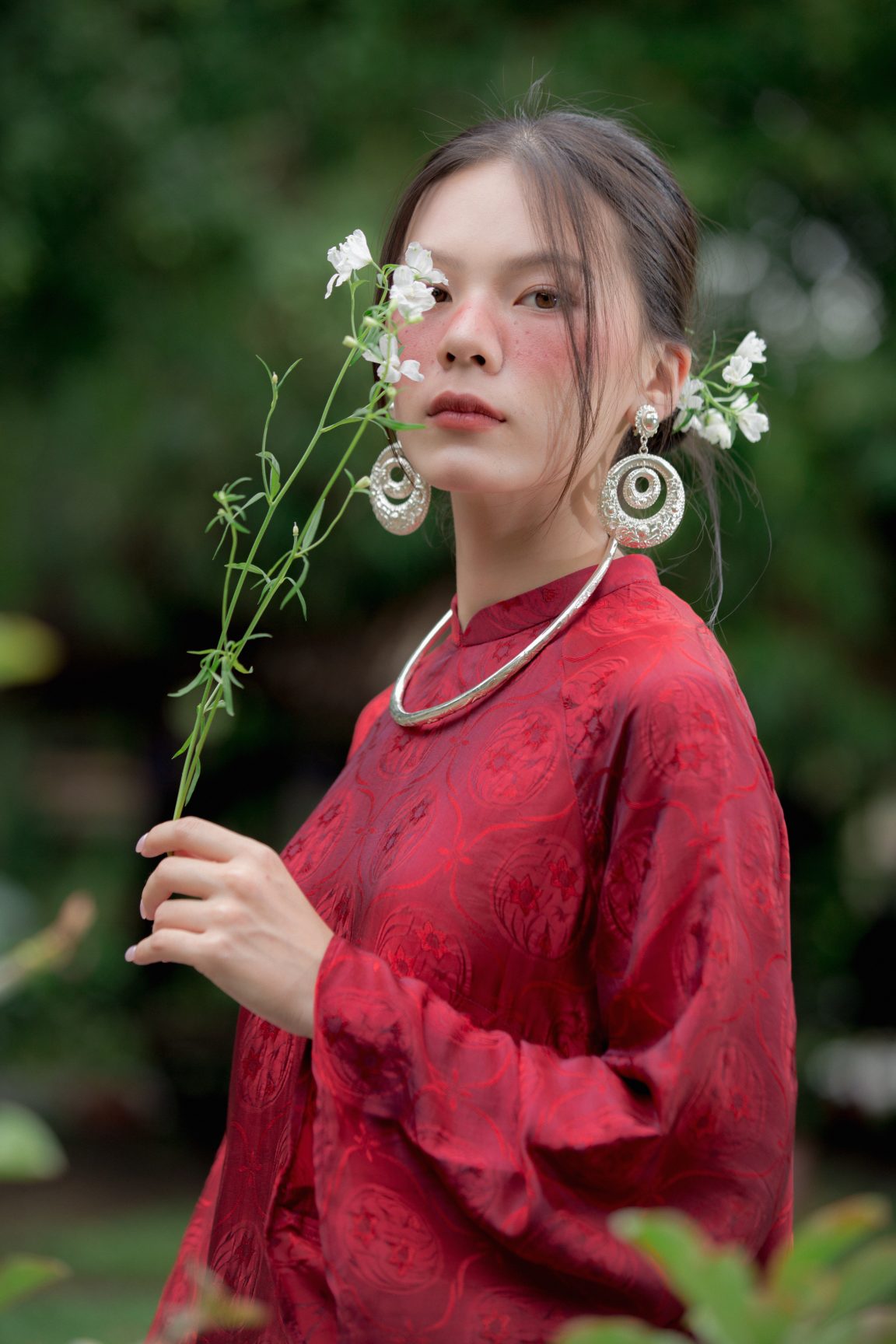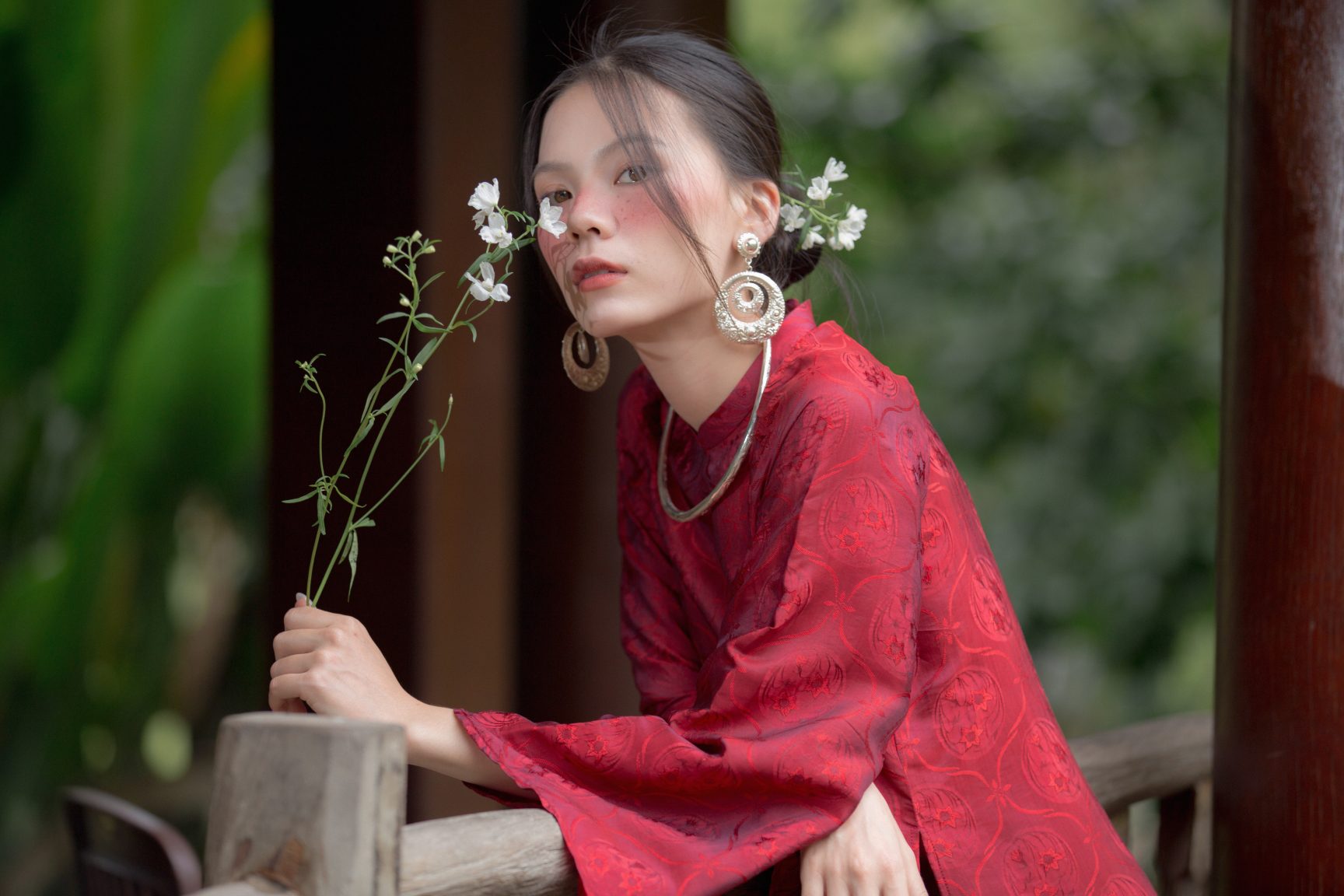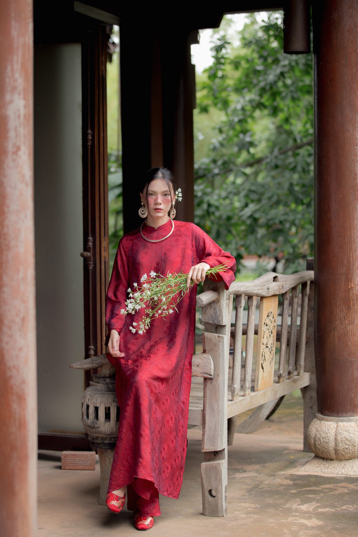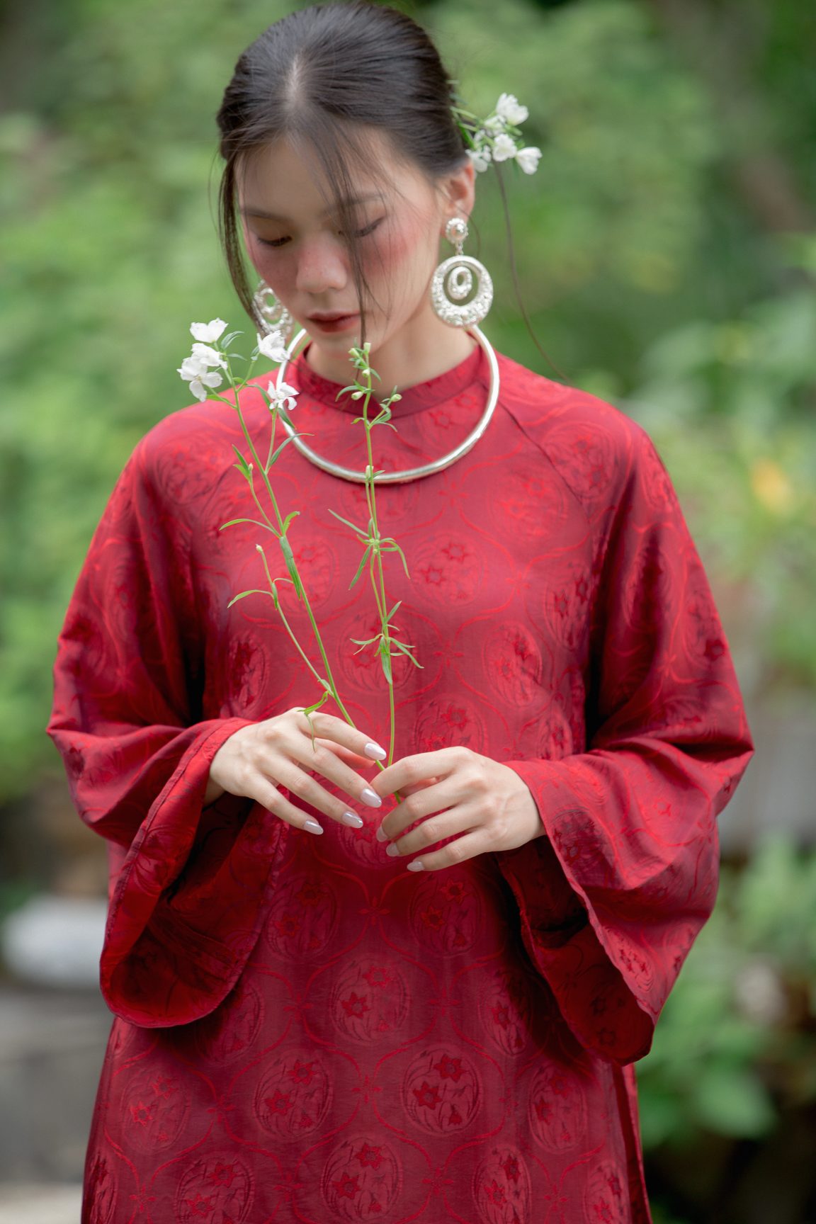 Be the first to review “Áo dài tơ tằm hoa Thuỷ Tiên màu đỏ”
