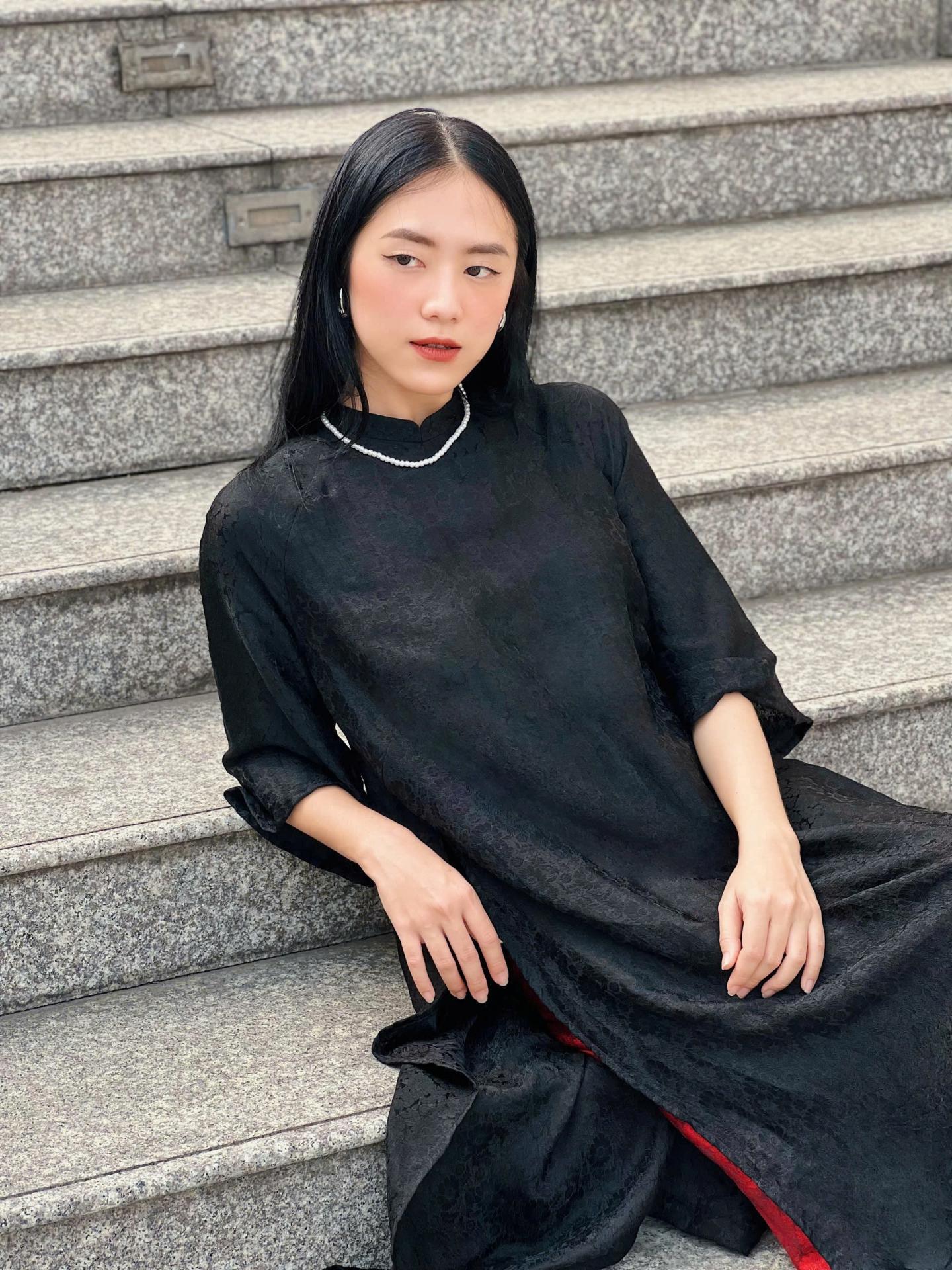 Áo dài hoạ tiết hoa cúc mang theo hơi thở dịu dàng của những đoá cúc nở sớm, thanh thoát mà vẫn có chiều sâu. Từng mảng hoa hiện lên mềm mại, tạo nên vẻ đẹp vừa kín đáo vừa cuốn hút. Sắc màu hài hòa kết hợp cùng họa tiết tinh xảo giúp tổng thể trở nên nhẹ nhàng, trang nhã. Một thiết kế gợi cảm giác an yên, phù hợp với những tâm hồn yêu sự tinh khôi và nét đẹp truyền thống được kể bằng giọng thật êm.