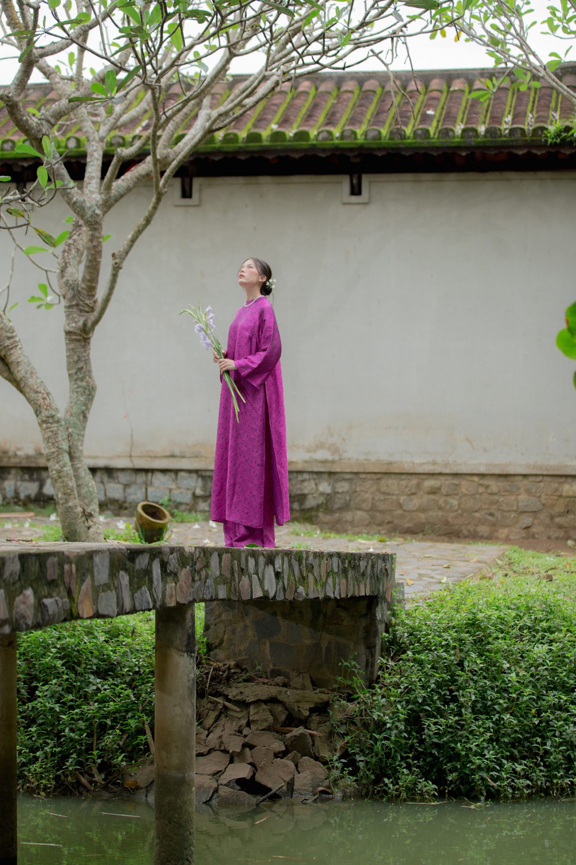 Áo dài hoạ tiết hoa cúc mang theo hơi thở dịu dàng của những đoá cúc nở sớm, thanh thoát mà vẫn có chiều sâu. Từng mảng hoa hiện lên mềm mại, tạo nên vẻ đẹp vừa kín đáo vừa cuốn hút. Sắc màu hài hòa kết hợp cùng họa tiết tinh xảo giúp tổng thể trở nên nhẹ nhàng, trang nhã. Một thiết kế gợi cảm giác an yên, phù hợp với những tâm hồn yêu sự tinh khôi và nét đẹp truyền thống được kể bằng giọng thật êm.
