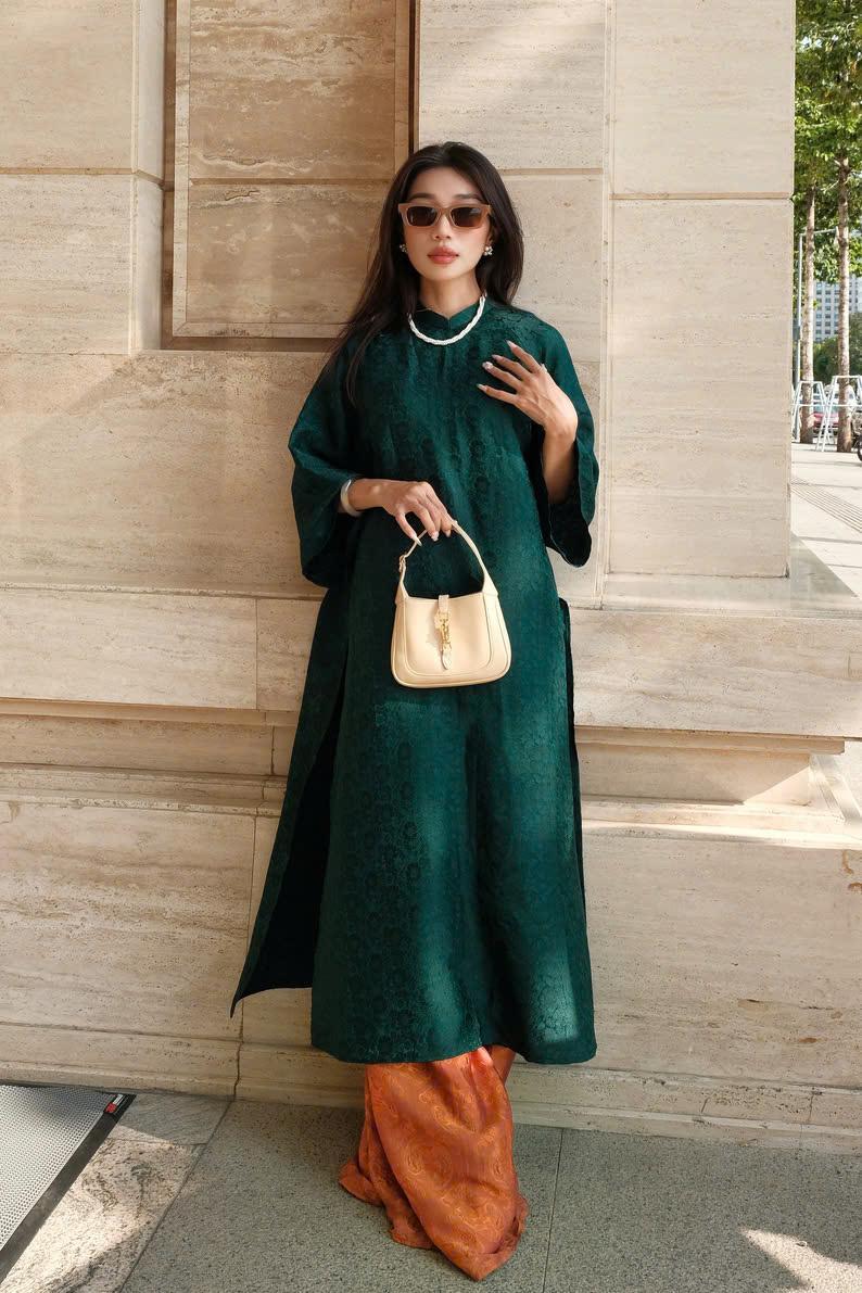 Phom quần suông thoải mái, chuyển động mềm theo bước chân, đem lại sự thanh thoát và trang nhã cho tổng thể. Một thiết kế dành cho những ai yêu nét đẹp truyền thống được kể bằng giọng nhẹ nhàng và tinh tế.