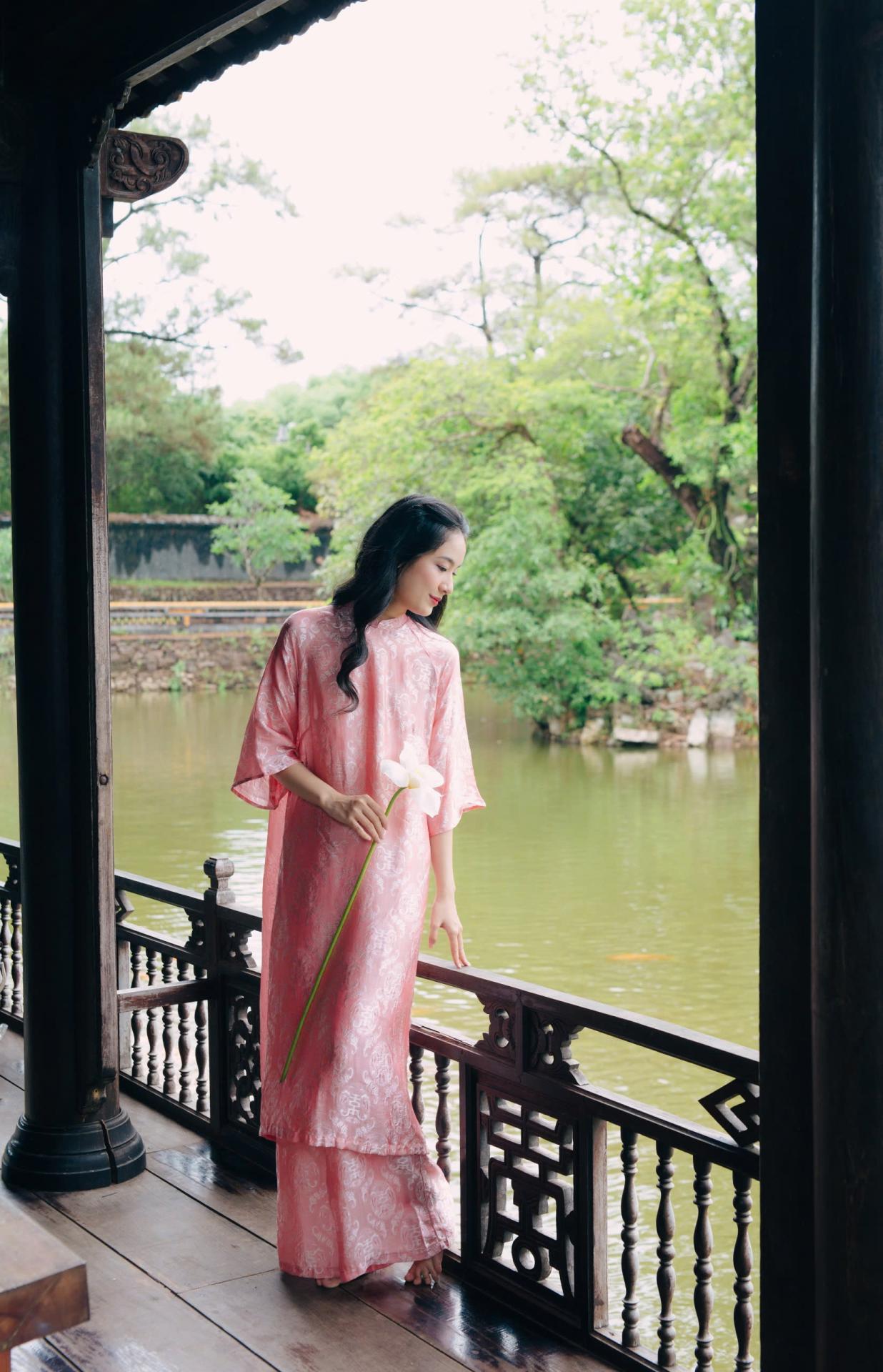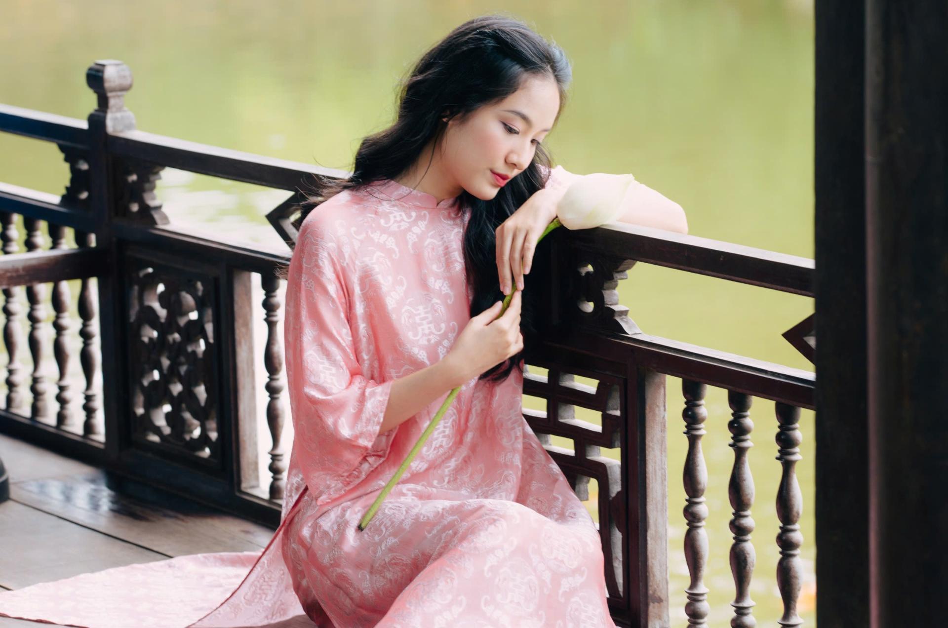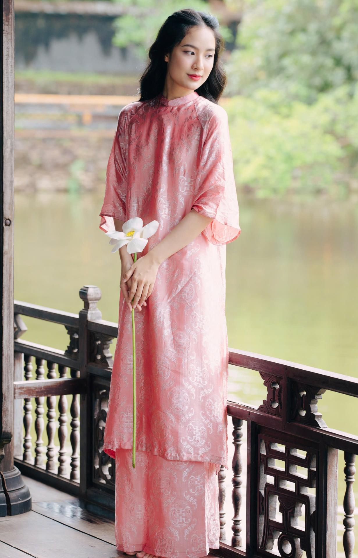 Áo dài tơ tằm hoạ tiết thọ dơi mang vẻ đẹp truyền thống được thể hiện qua chất liệu mềm mại và thiết kế thanh thoát. Nền tơ óng nhẹ kết hợp họa tiết dệt tinh tế tạo nên tổng thể sang trọng nhưng vẫn giữ được nét dịu dàng đặc trưng của áo dài. Thiết kế hướng đến sự nhẹ nhàng, tôn dáng kín đáo và giữ trọn tinh thần nữ tính trong từng chuyển động.